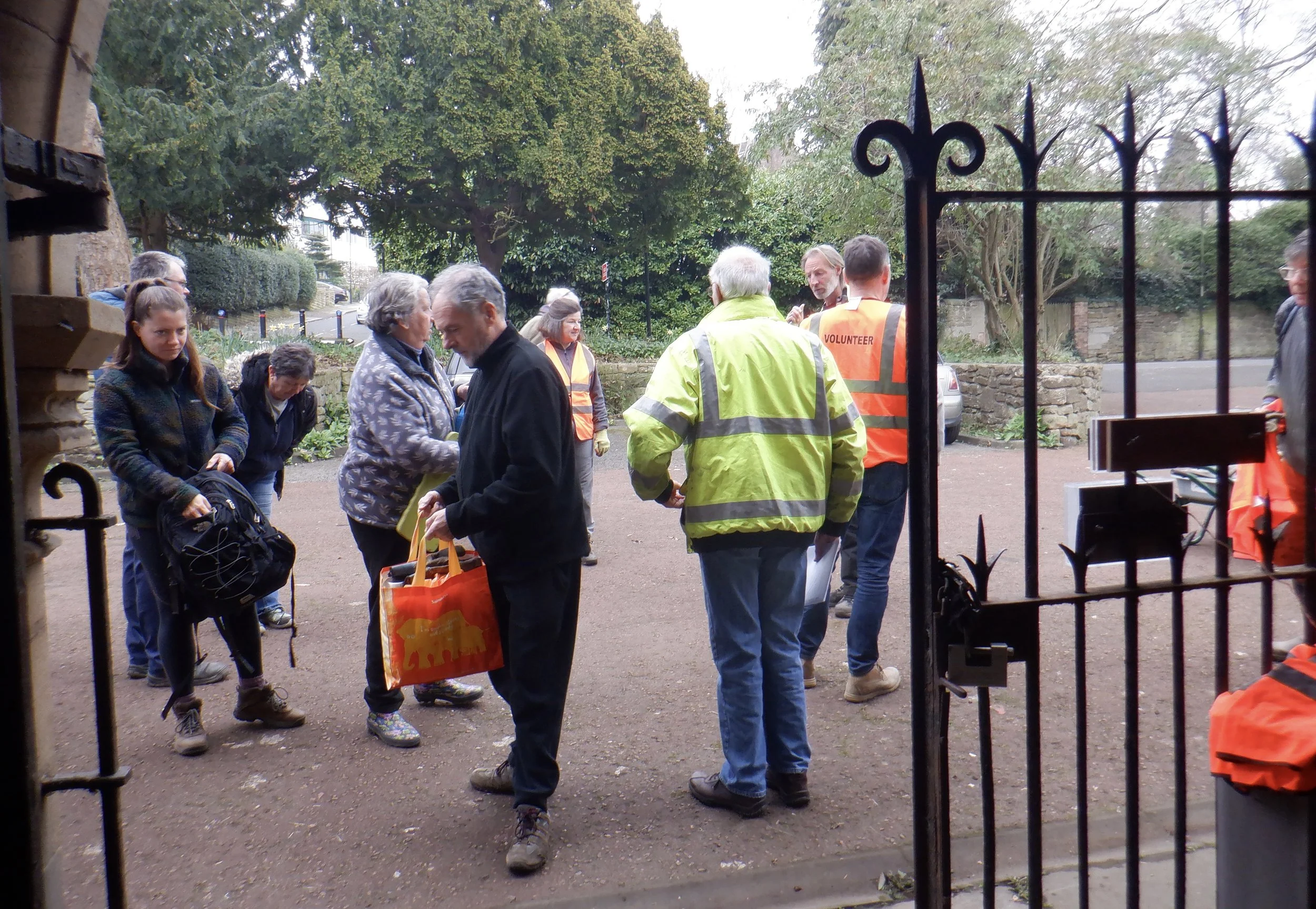 Volunteers at a previous Banqueting Hall working party, in October 2025, take a break from their labours.