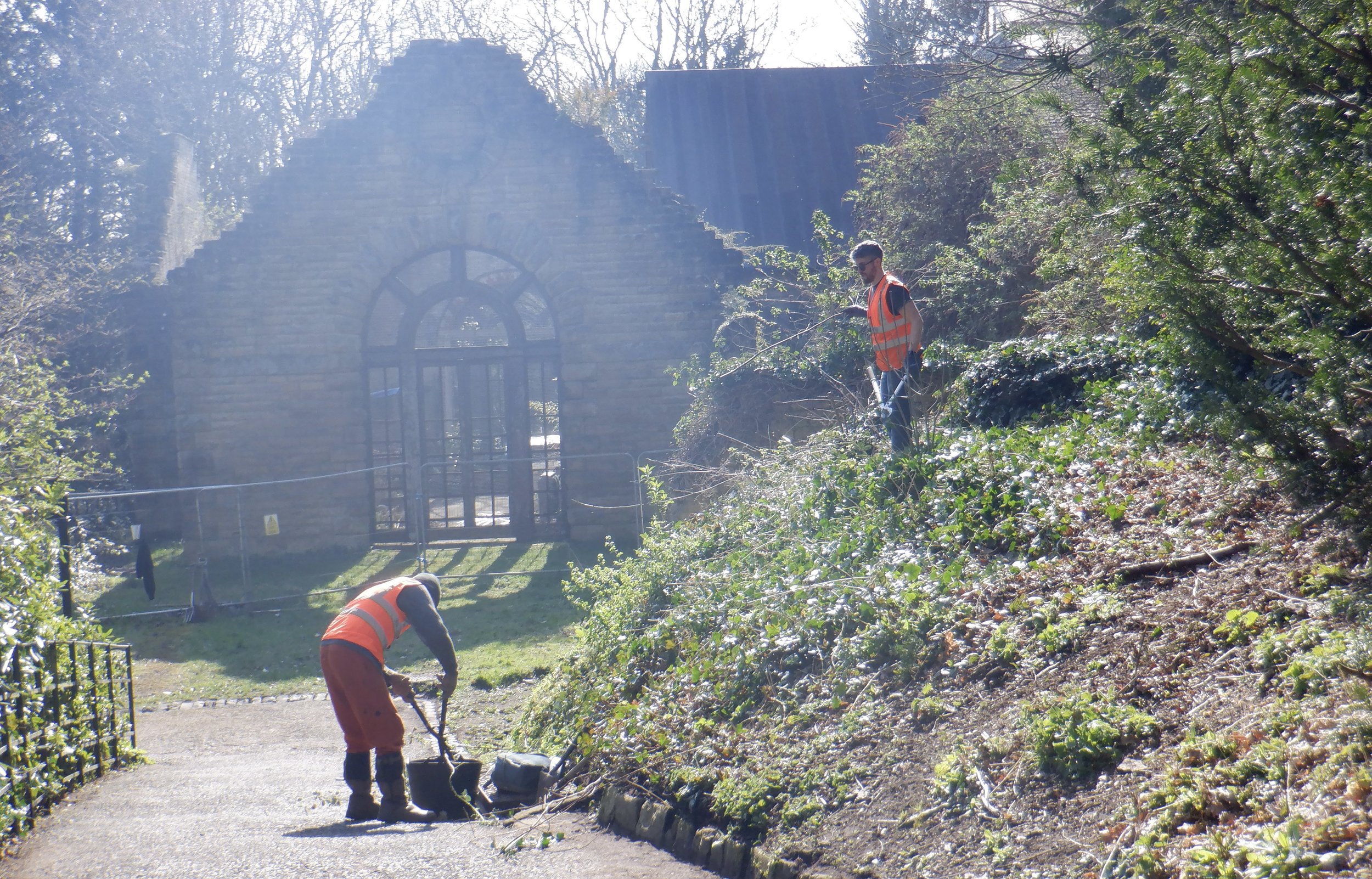 A new working party for volunteers has been arranged for the weekend of 21–22 March. Its purpose is to clear vegetation from the Banqueting Hall site and its environs, in preparation for preliminary restoration to begin.
